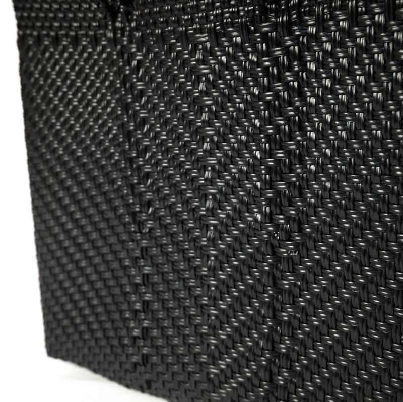 本体からハンドル部分にいたるまで紐がしっかりと編み込まれており、とても丈夫に作られているバッグは、水に濡れても平気な素材でできているため、水洗いも可能です。