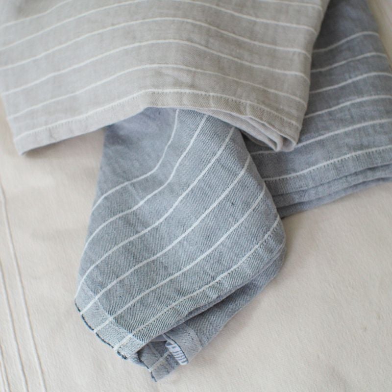 KASTE multi-use towelは生地の上下にラインが入ったシンプルなデザインなのですが、細い控え目なラインに2色の糸を丁寧に織り込んだ生地はシンプルながら表情がついてお部屋でちょうどいい存在感を放ってくれます。