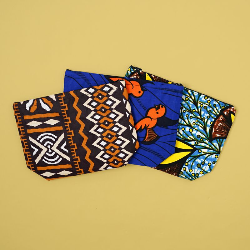 厳選した西アフリカのパーニュ布で作られた、アフリカンポーチ。