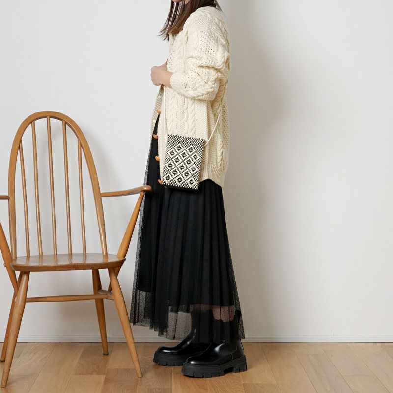 細かいコードを複雑に編み込んでいるメルカドバッグにはコードの編み飛ばしが稀にございますが、コード1本分の編み飛ばしは商品特性とさせていただきます。