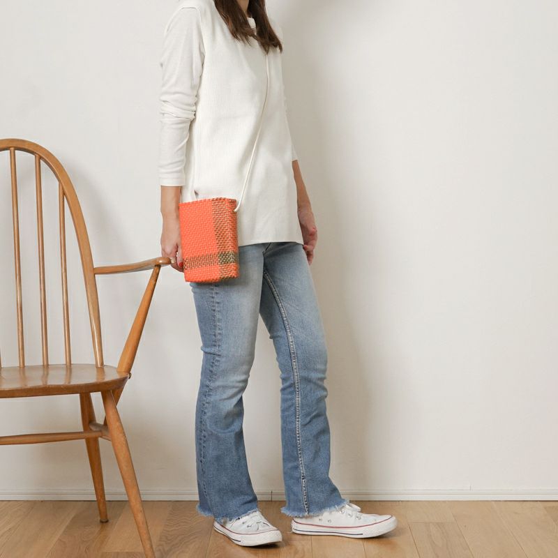 メルカドバッグは再生プラスチックを使用しており、コードに1mm以下の細かい異物が混入していたり、色ムラがある場合がございます。