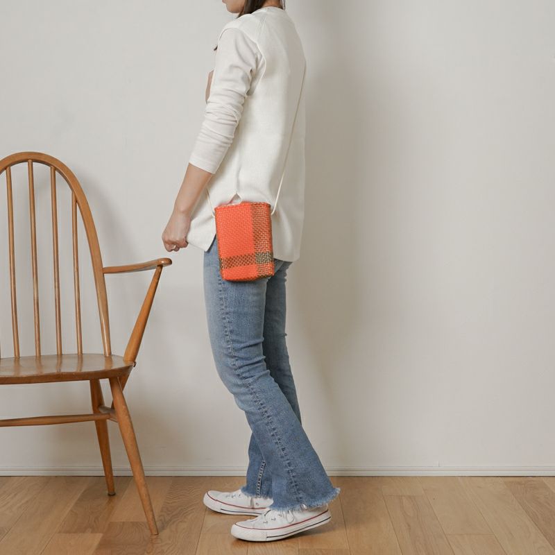 細かいコードを複雑に編み込んでいるメルカドバッグにはコードの編み飛ばしが稀にございますが、コード1本分の編み飛ばしは商品特性とさせていただきます。