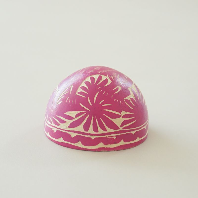カラフルな半球に、動物のモチーフが彫られたアイテム。