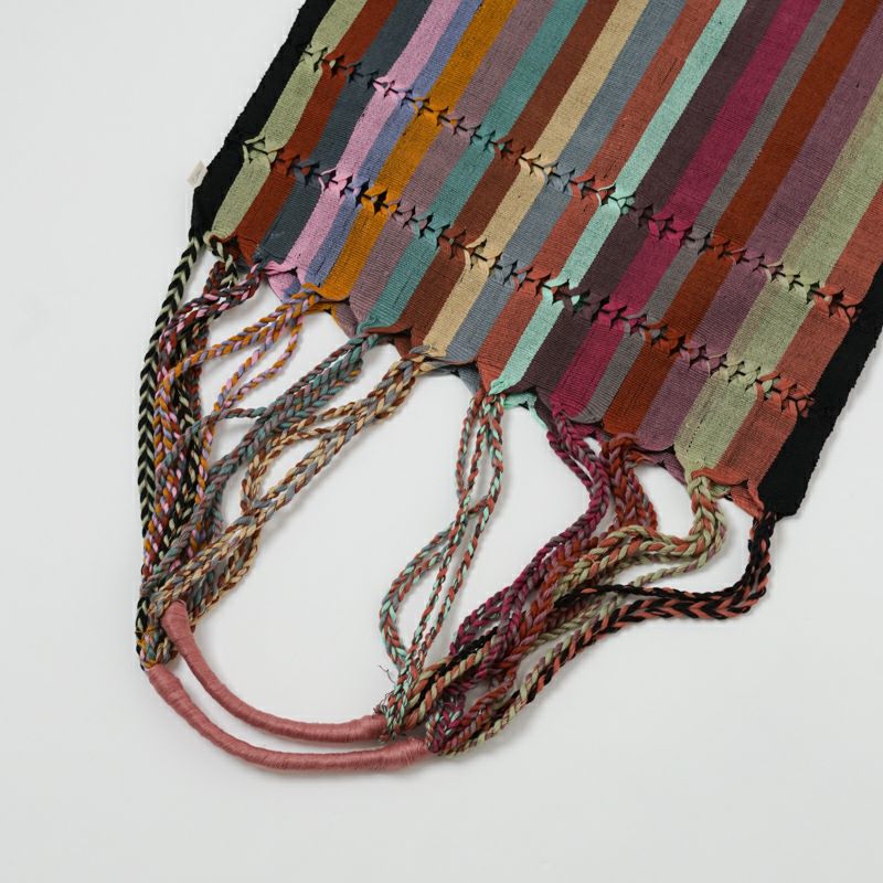 肩ひも部分は、バッグを織っていた糸を縒って作られており、糸処理の結び目が飛び出して見える場合がございます。