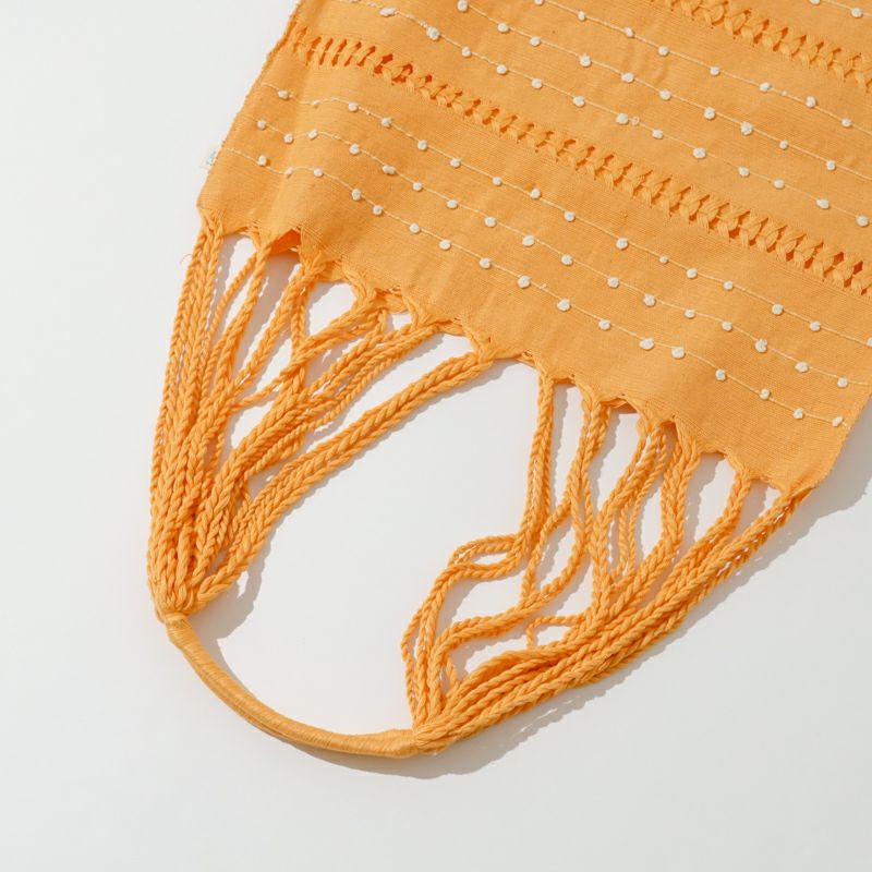 肩ひも部分は、バッグを織っていた糸を縒って作られており、糸処理の結び目が飛び出して見える場合がございます。