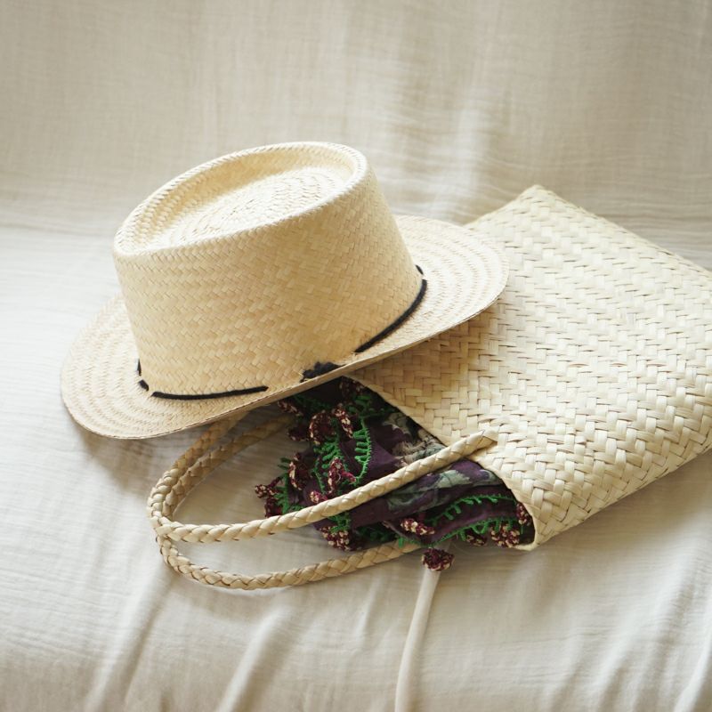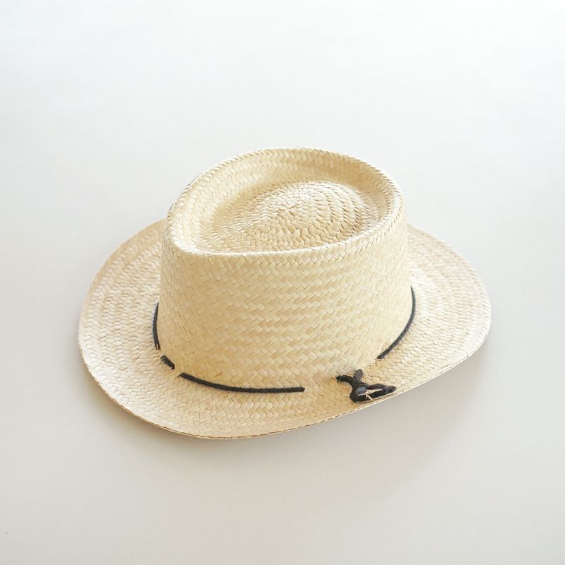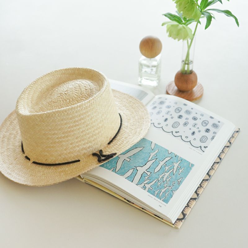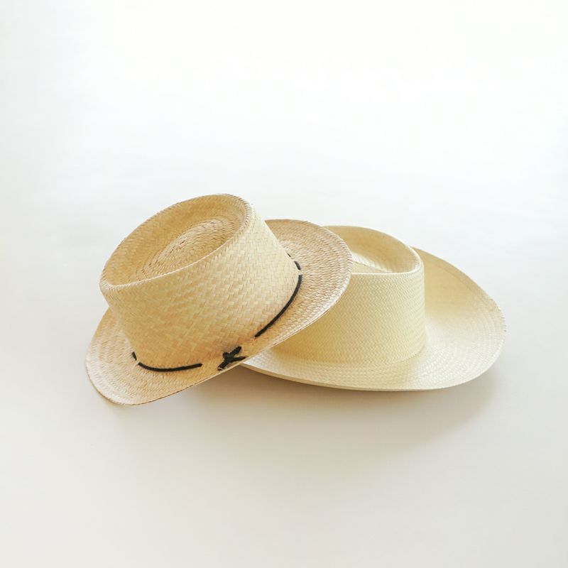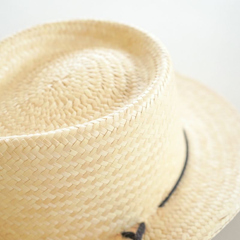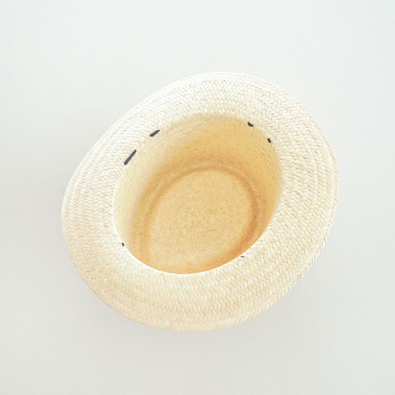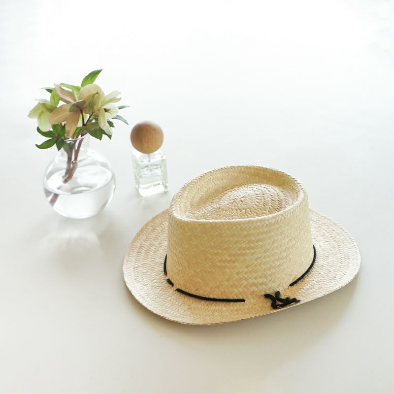 帽子の材料として使用されているパルマ(ヤシの葉)は、軽くて通気性が良いのが特徴で、天然素材のため経年変化も楽しめます。