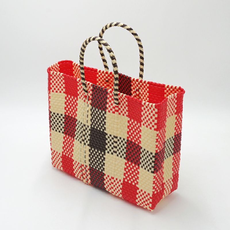 MERCADO BAG - 3COLORS CHECK - Cream / Red / Brown (XS)