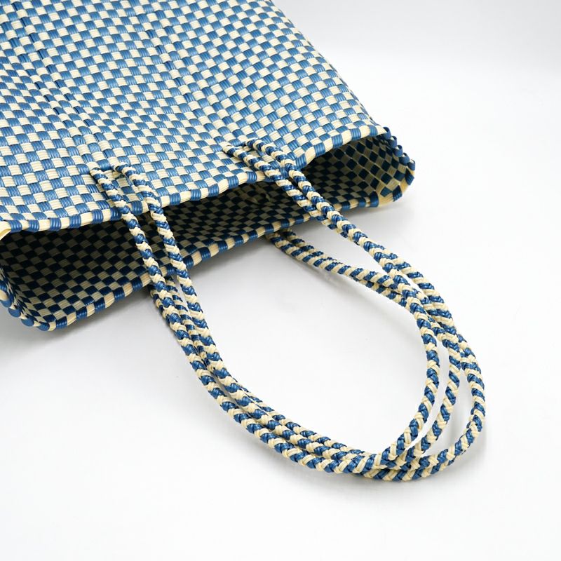 MERCADO BAG - CHECKER - LONG HANDLE - Metallic Blue / Cream (M)