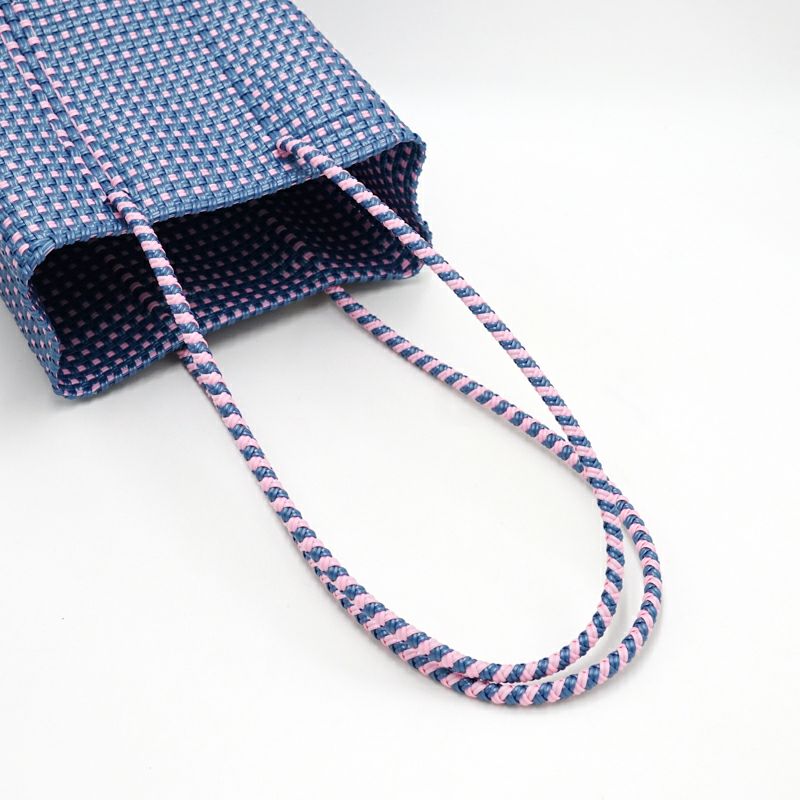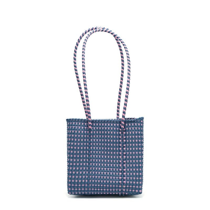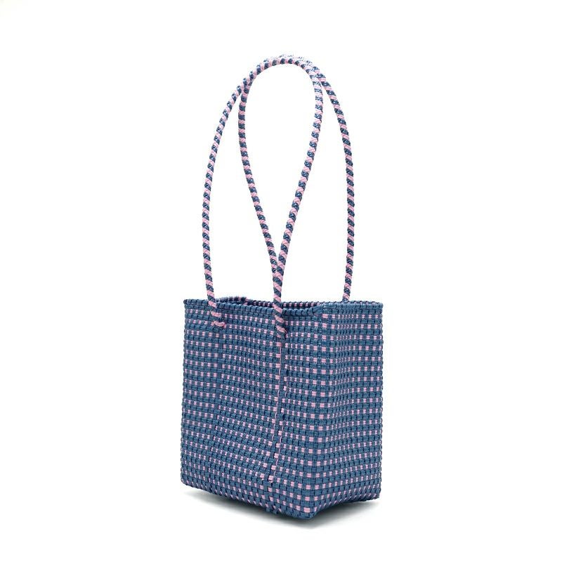 MERCADO BUCKET SLIM STYLE - MINI CHECK - Metallic Blue / Pink (LONG HANDLE)