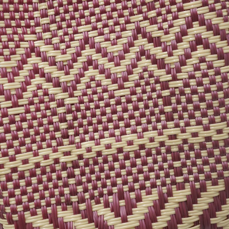 材料のプラスチップコードを細くカットした上で木製の道具で編み上げて製作しており、コード同士や道具が摩擦した影響で商品に擦れのようなものが見られます。