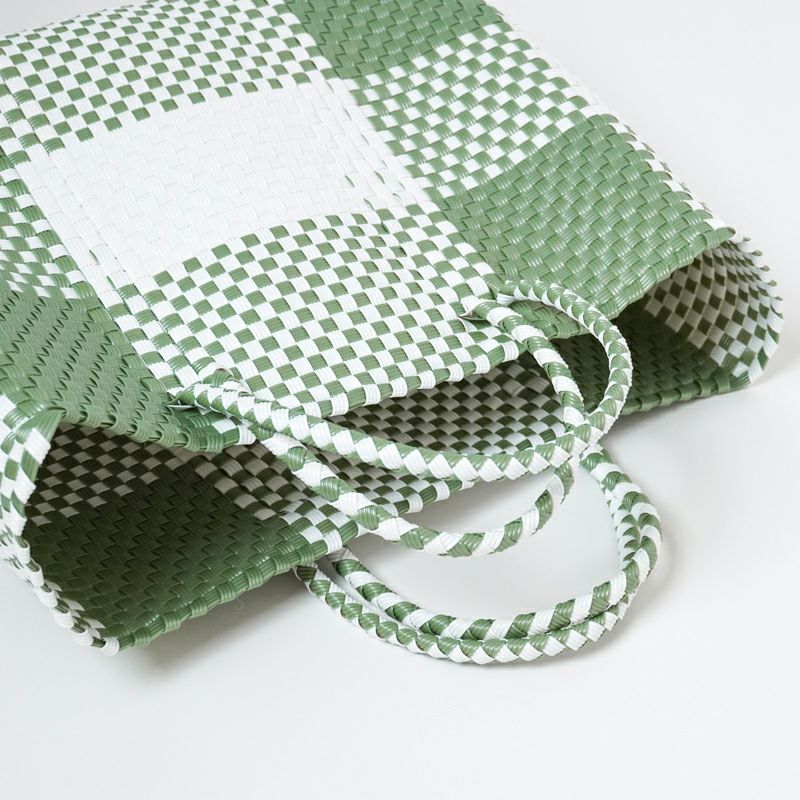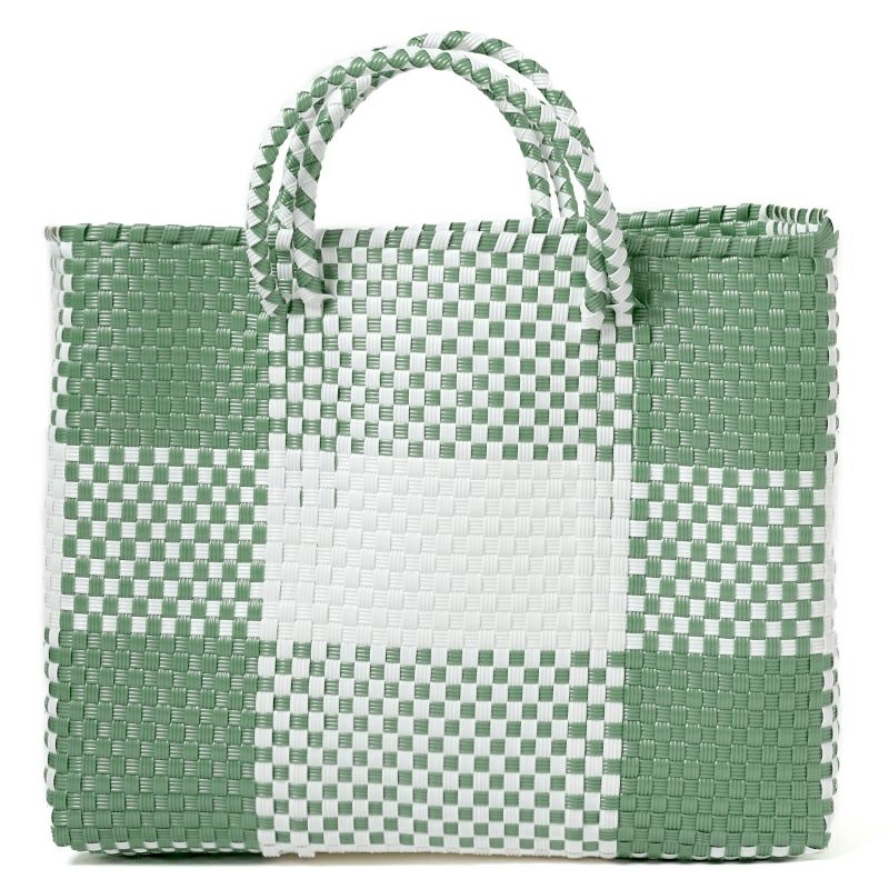 MERCADO - BIG BAG - BIG CHECK - Metallic Green / White