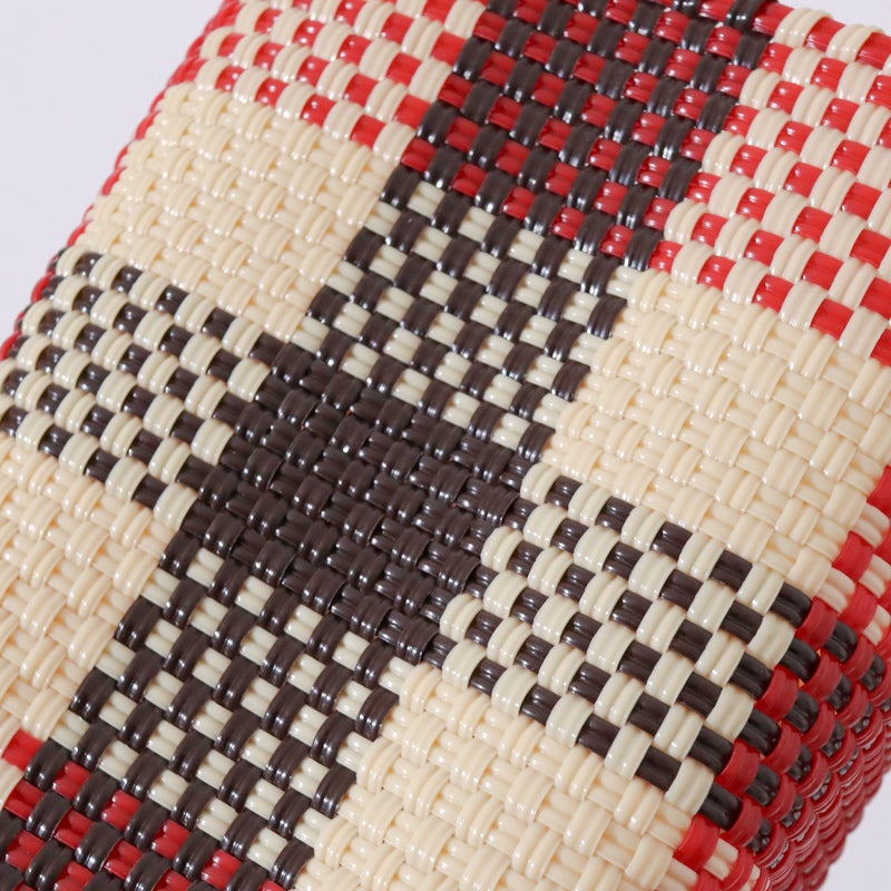 材料のプラスチップコードを細くカットした上で木製の道具で編み上げて製作しており、コード同士や道具が摩擦した影響で商品に擦れのようなものが見られます。