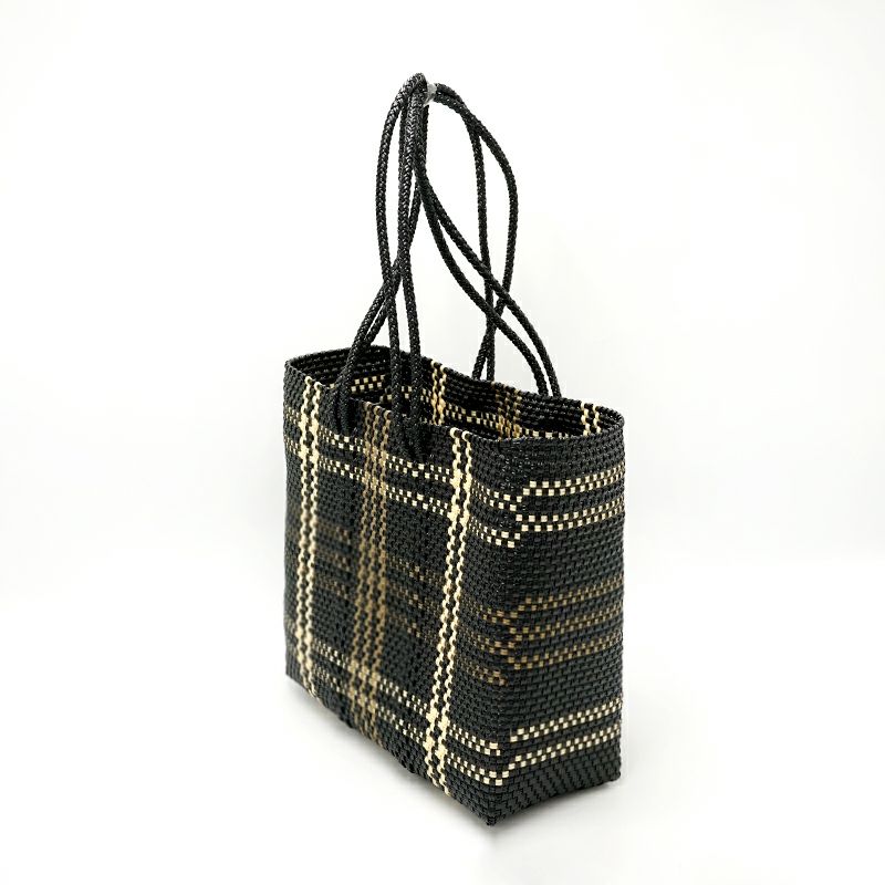 MERCADO BAG - LINE CHECK - LONG HANDLE - Black / Cream / Gold / (M)