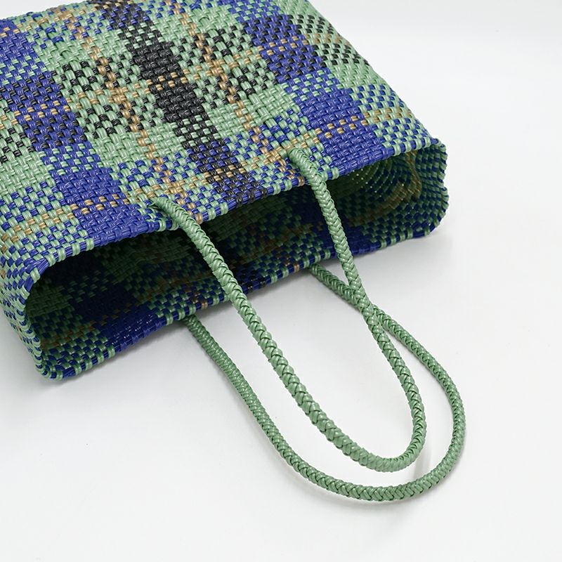 MERCADO BAG - TARTAN CHECK - LONG HANDLE - Metallic Green / Navy / Black (XS)