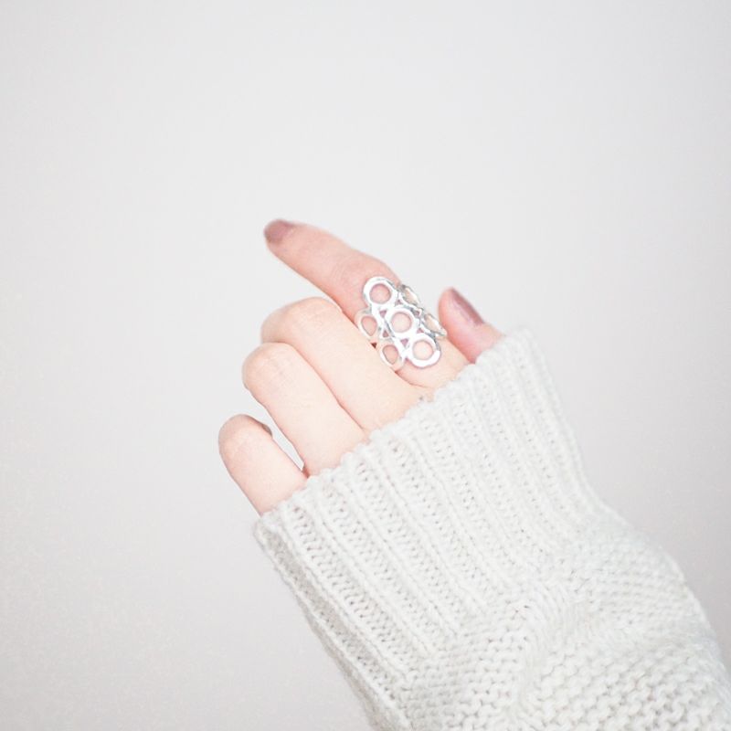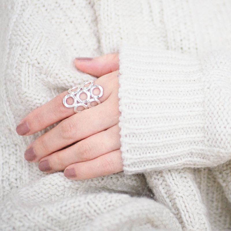 カジュアルにも、シックな服装にも合うシルバーのアクセサリー。