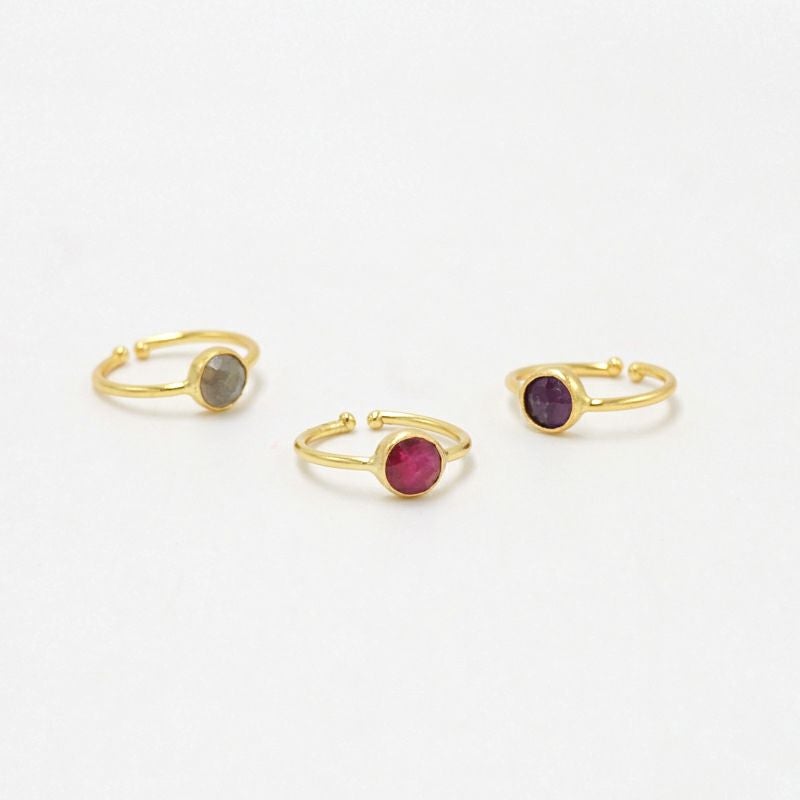 TURQUIA - RING - ROUND STONEは、小ぶりの天然石を真鍮の台座にはめ込んだリングです。