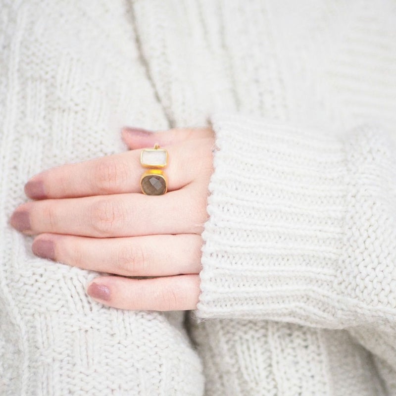 TURQUIA - RING - 2STONEは、2種類の天然石を真鍮の台座にはめ込んだリングです。