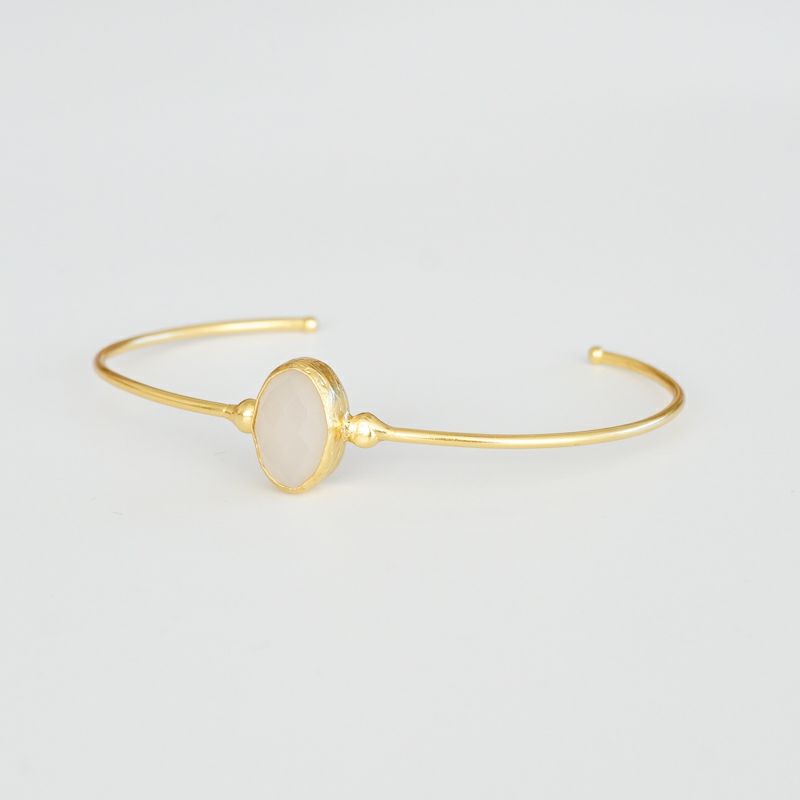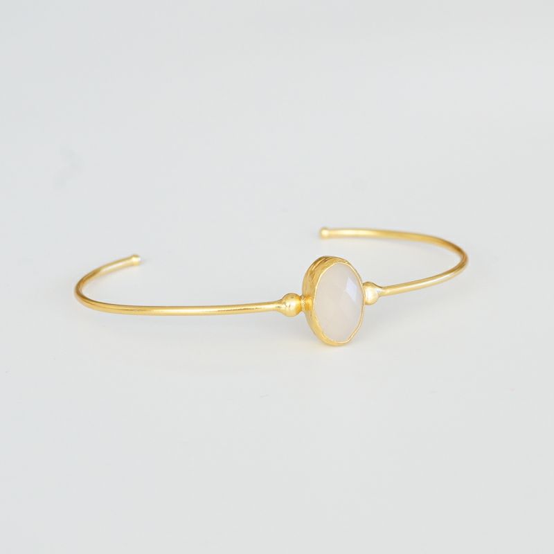 TURQUIA - BANGLE - OVAL STONE - WHITE CHALCEDONY