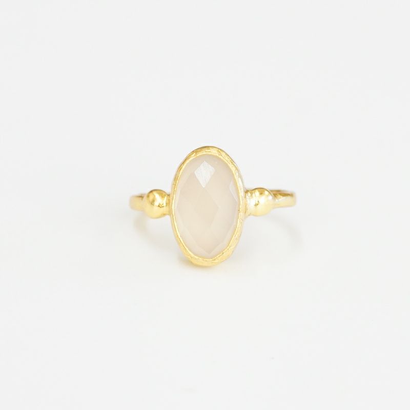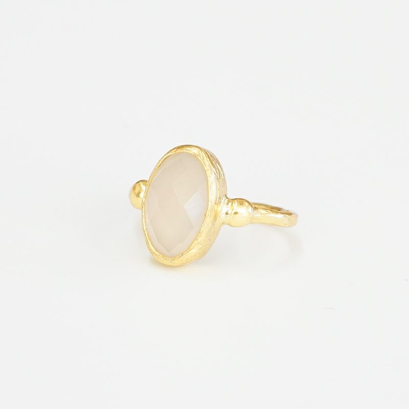 TURQUIA - RING - OVAL STONE (S) - WHITE CHALCEDONY