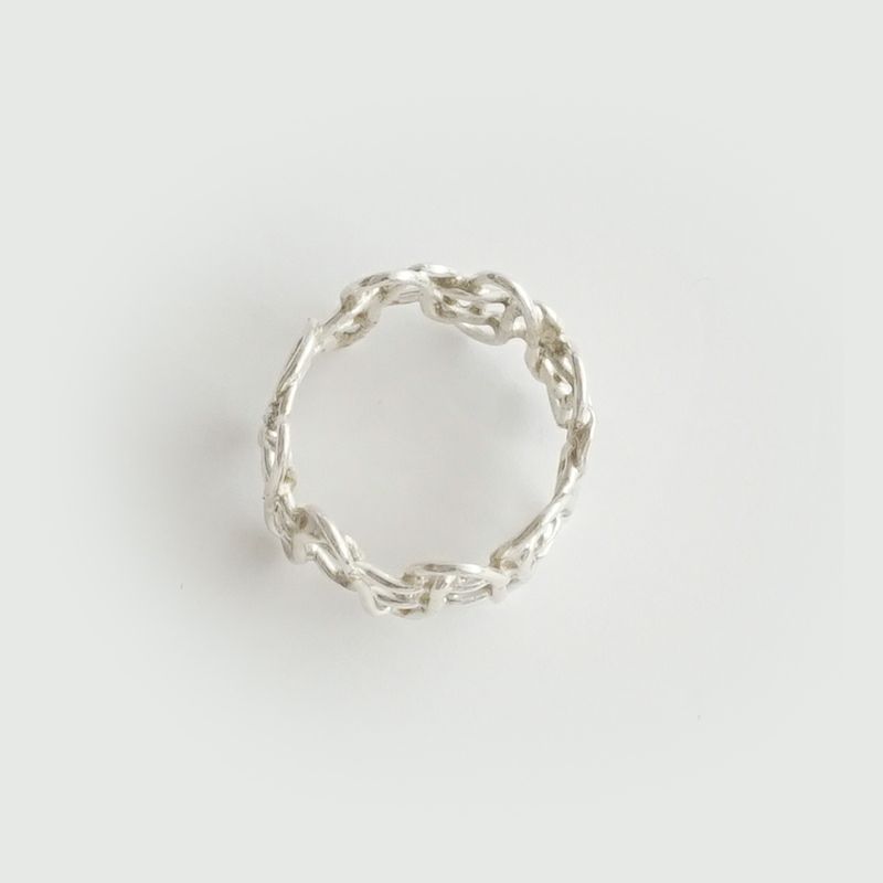 緩やかにカーブするリングに球体を組み合わせたリングは、