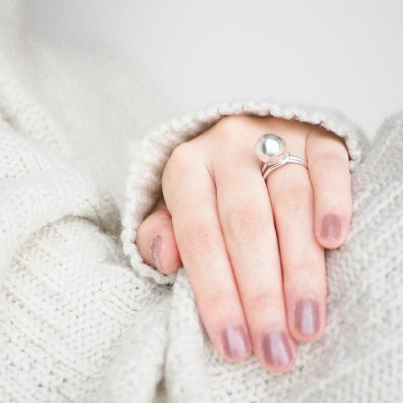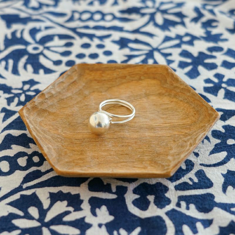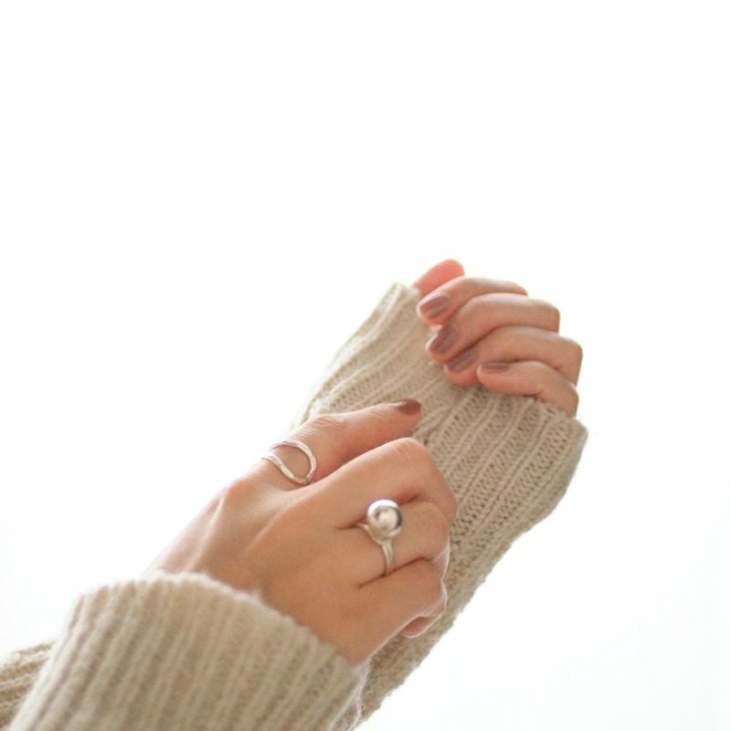 緩やかにカーブするリングに球体を組み合わせたリングは、