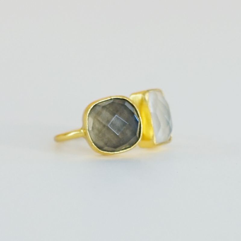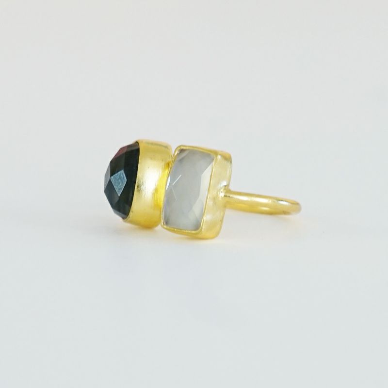 TURQUIA - RING - 2STONEは、2種類の天然石を真鍮の台座にはめ込んだリングです。