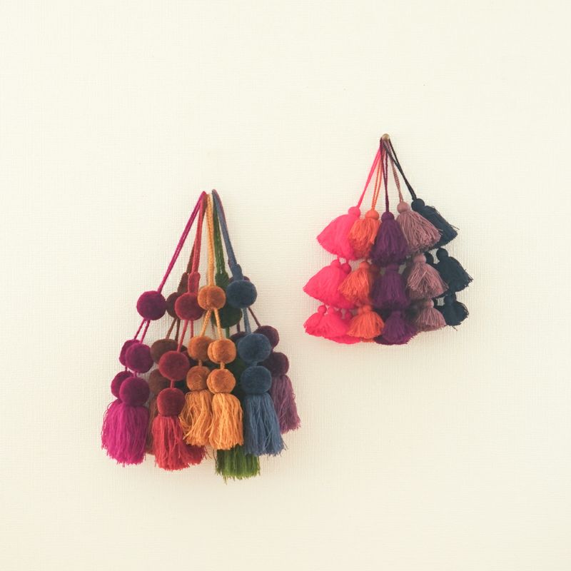 こちらの商品はポンポンのサイズやタッセルの長さに若干の個体差がございます。 また若干のほつれや毛羽立ちが見られる場合がございますが、