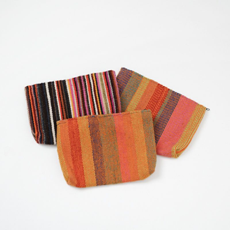 ラグのようなしっかりとした厚みのある生地は丈夫で、触るとあたたかみのあるポーチ。