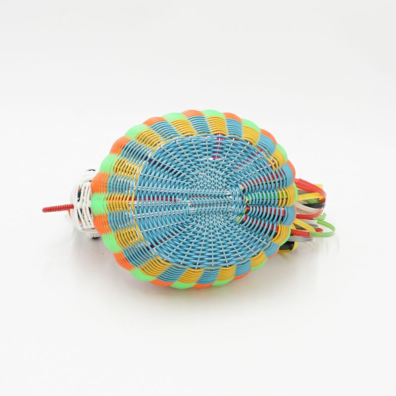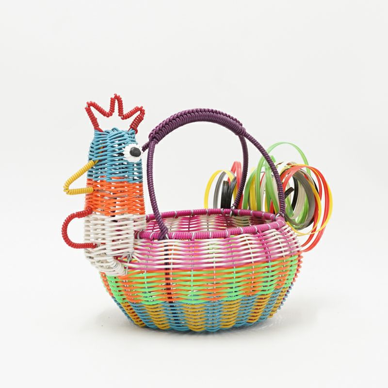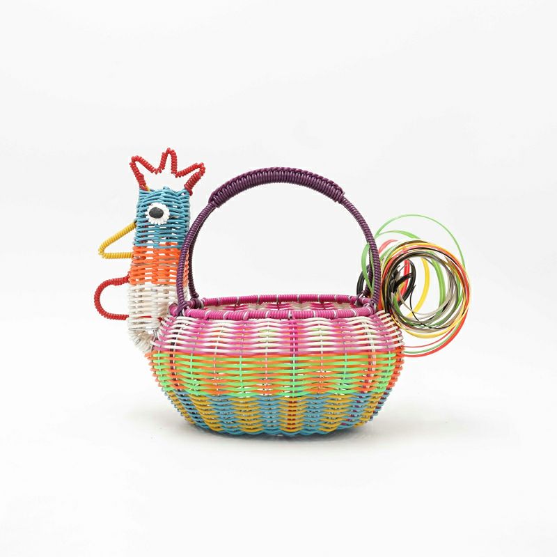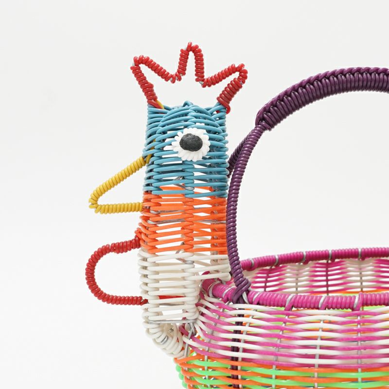 一点一点丹精込めて編み込まれたニワトリがモチーフのバスケットです。