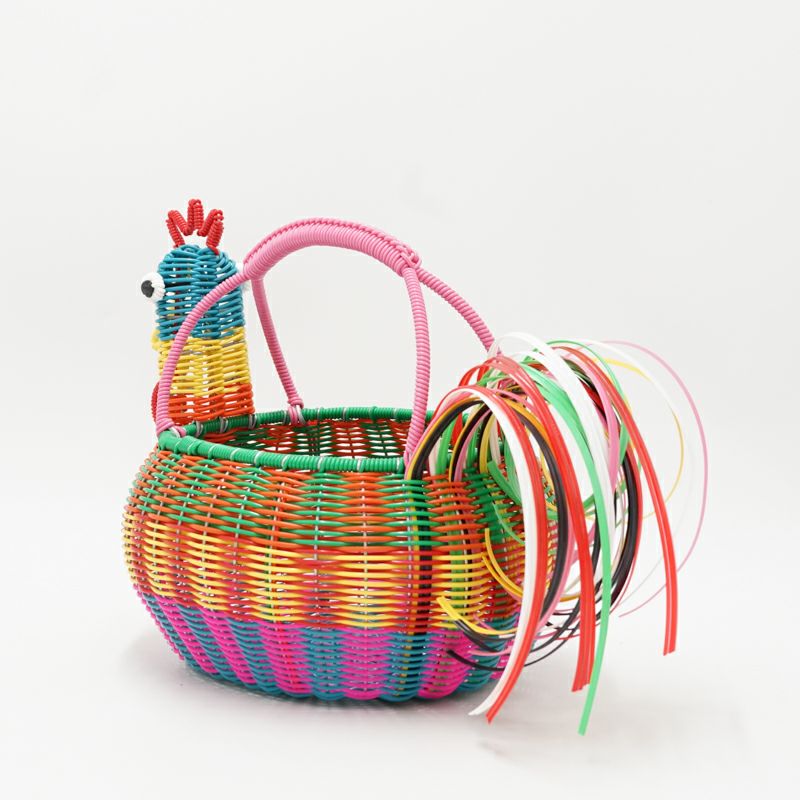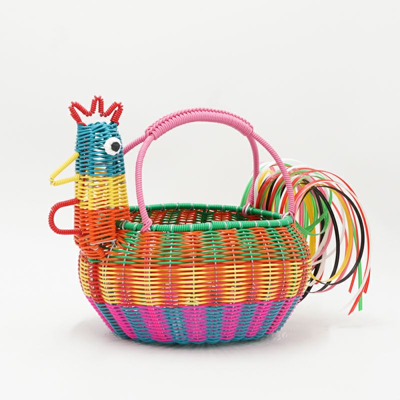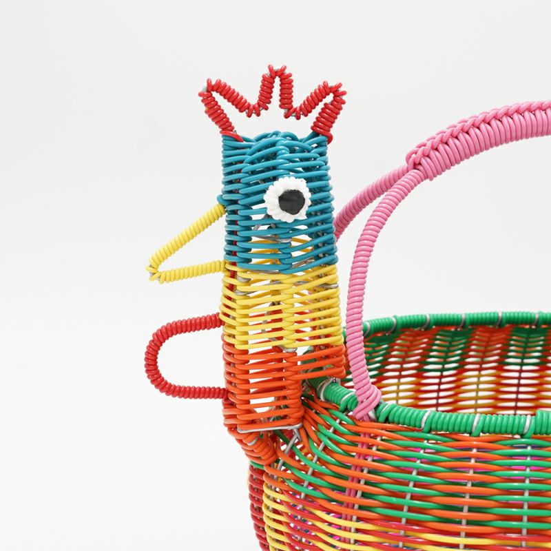 一点一点丹精込めて編み込まれたニワトリがモチーフのバスケットです。