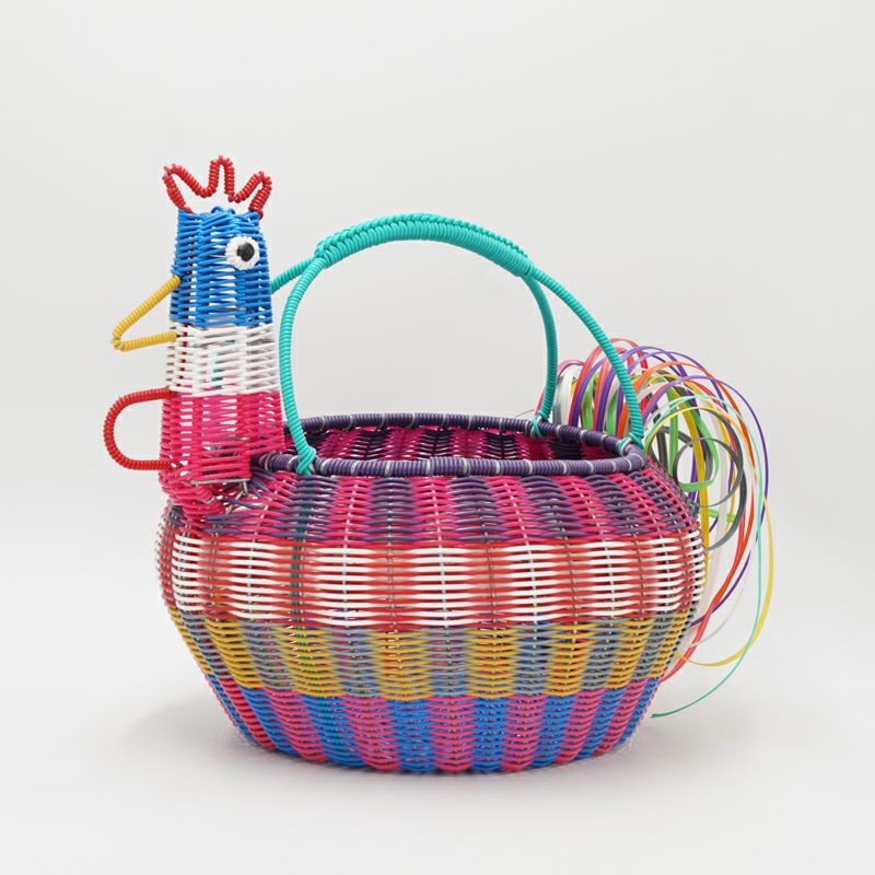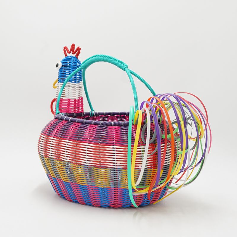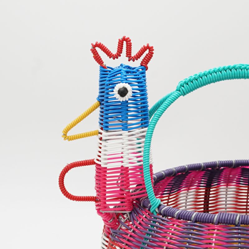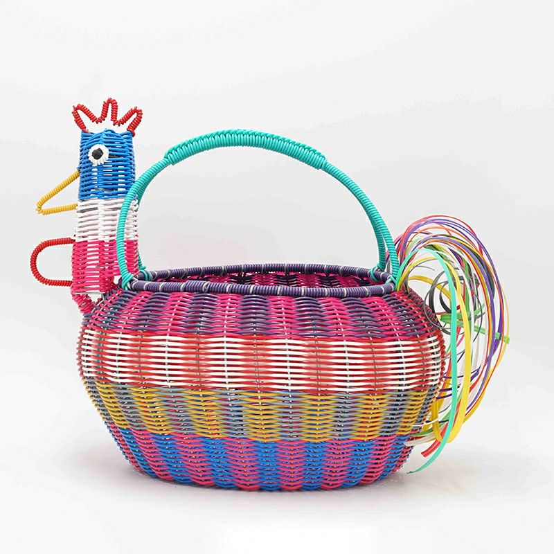 一点一点丹精込めて編み込まれたニワトリがモチーフのバスケットです。