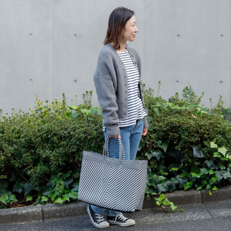 メルカドバッグは再生プラスチックを使用しており、コードに1mm以下の細かい異物が混入していたり、色ムラがある場合がございます。
