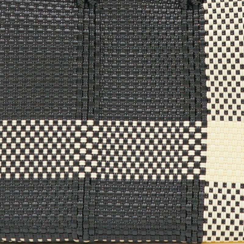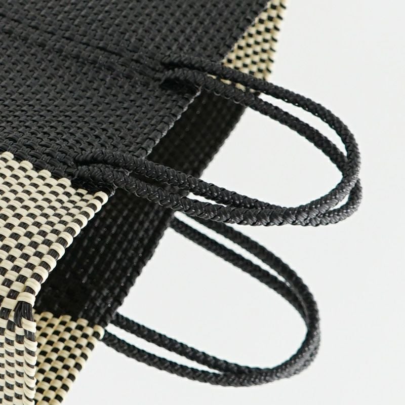 本体からハンドル部分にいたるまで紐がしっかりと編み込まれており、とても丈夫に作られているバッグは、水に濡れても平気な素材でできているため、水洗いも可能です。