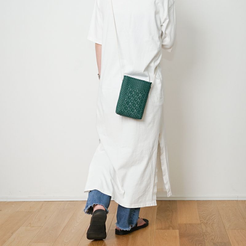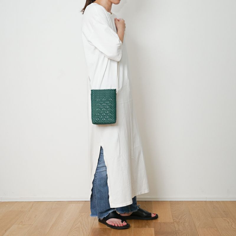 細かいコードを複雑に編み込んでいるメルカドバッグにはコードの編み飛ばしが稀にございますが、コード1本分の編み飛ばしは商品特性とさせていただきます。