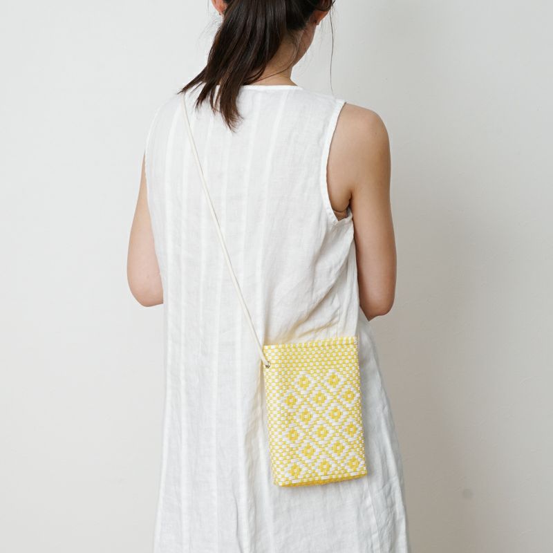 細かいコードを複雑に編み込んでいるメルカドバッグにはコードの編み飛ばしが稀にございますが、コード1本分の編み飛ばしは商品特性とさせていただきます。