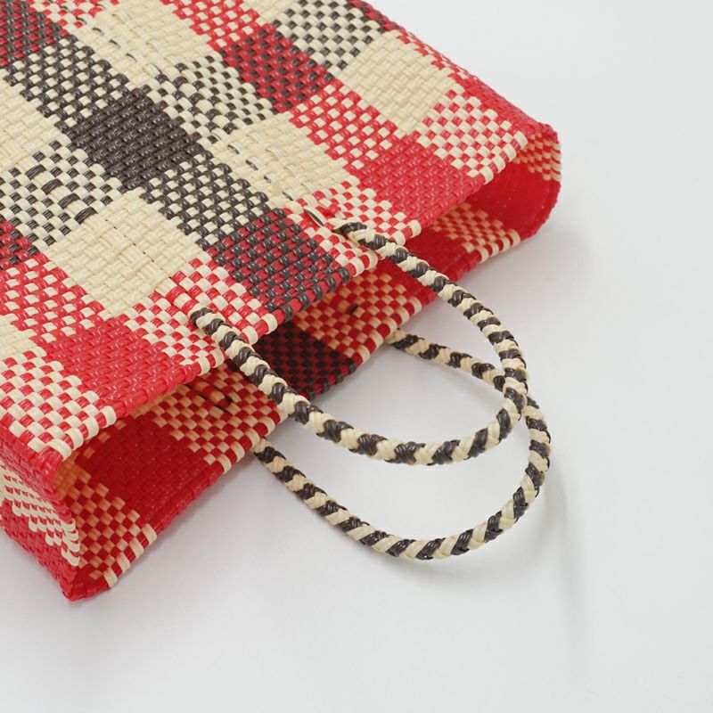 MERCADO BAG - 3COLORS CHECK - Cream / Red / Brown (XS)