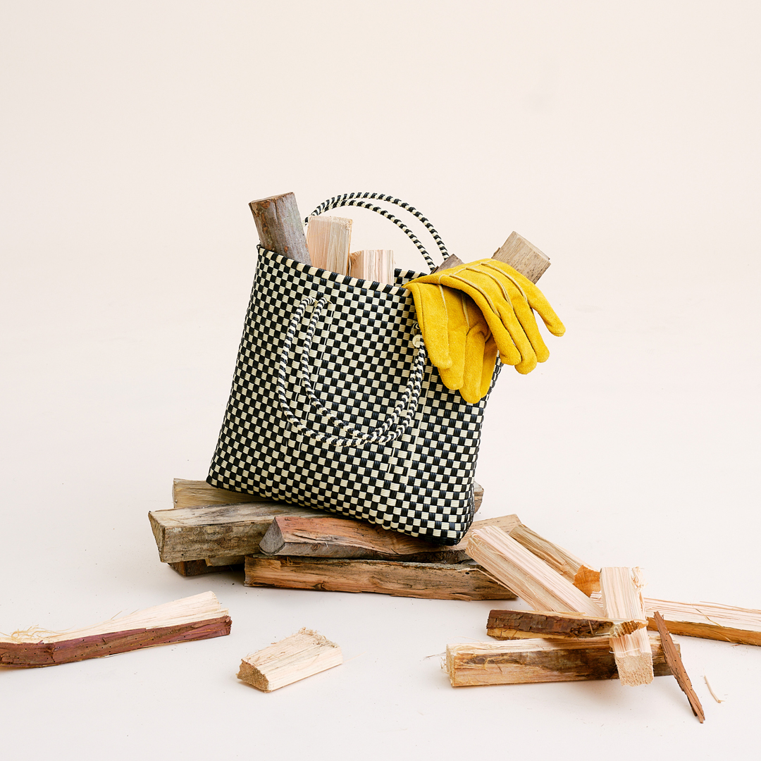 MERCADO BAG - CHECKER - LONG HANDLE - Black / Cream (M)