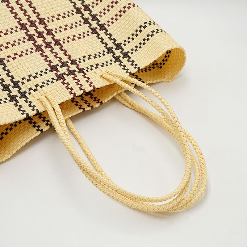 MERCADO BAG - LINE CHECK - LONG HANDLE - Cream / Brown / Dark Red (M)