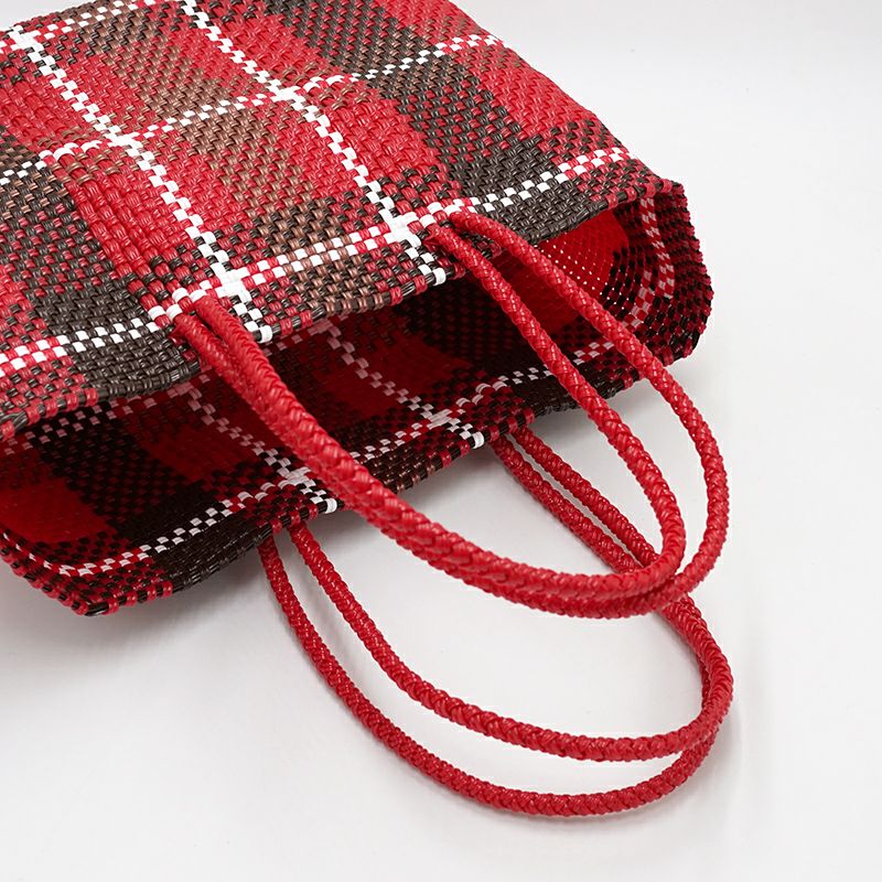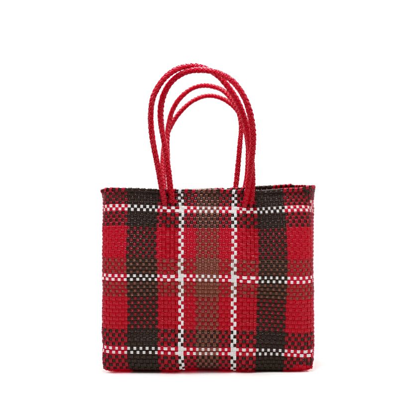 MERCADO BAG - TARTAN CHECK - LONG HANDLE - Red / Brown / Copper (S)