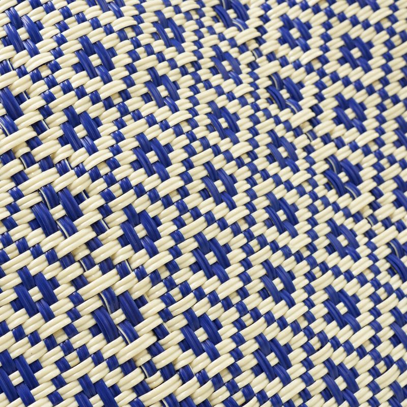 本体からハンドル部分にいたるまで紐がしっかりと編み込まれており、とても丈夫に作られているバッグは、水に濡れても平気な素材でできているため、水洗いも可能です。