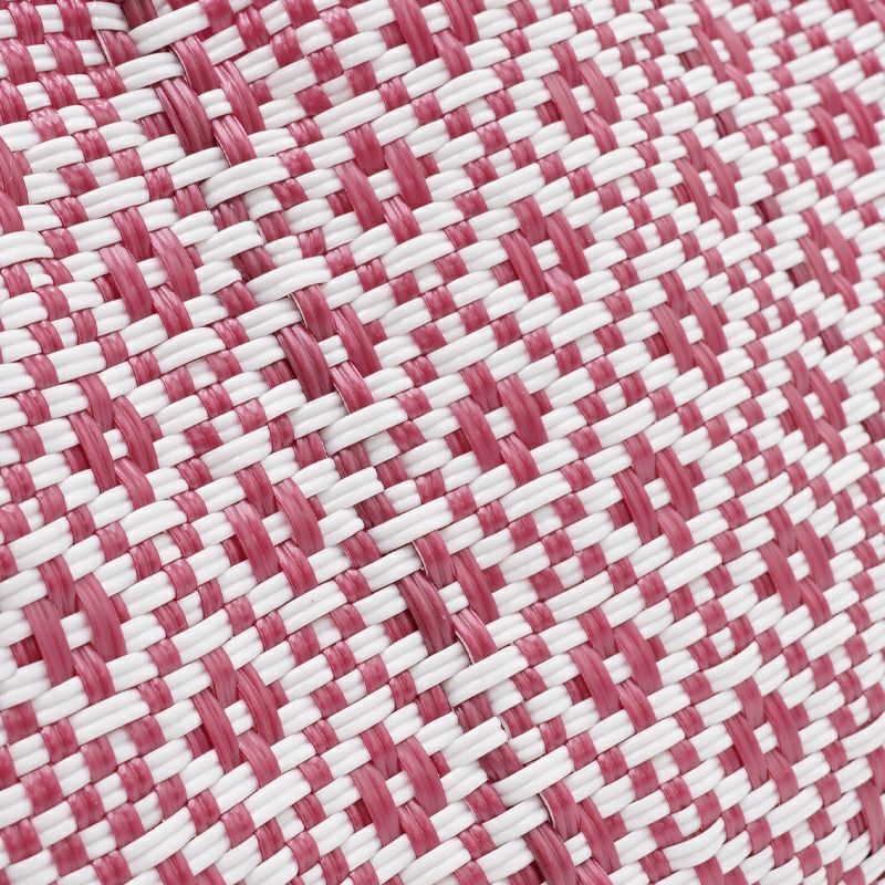 本体からハンドル部分にいたるまで紐がしっかりと編み込まれており、とても丈夫に作られているバッグは、水に濡れても平気な素材でできているため、水洗いも可能です。