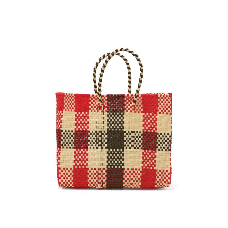 MERCADO BAG - 3COLORS CHECK - Cream / Red / Brown (XS)