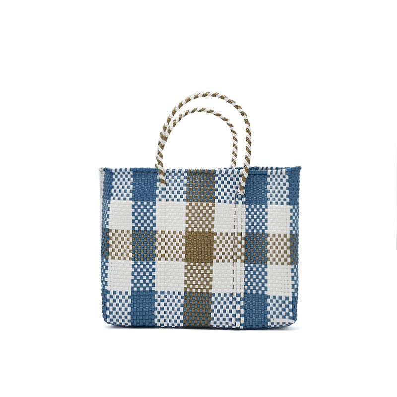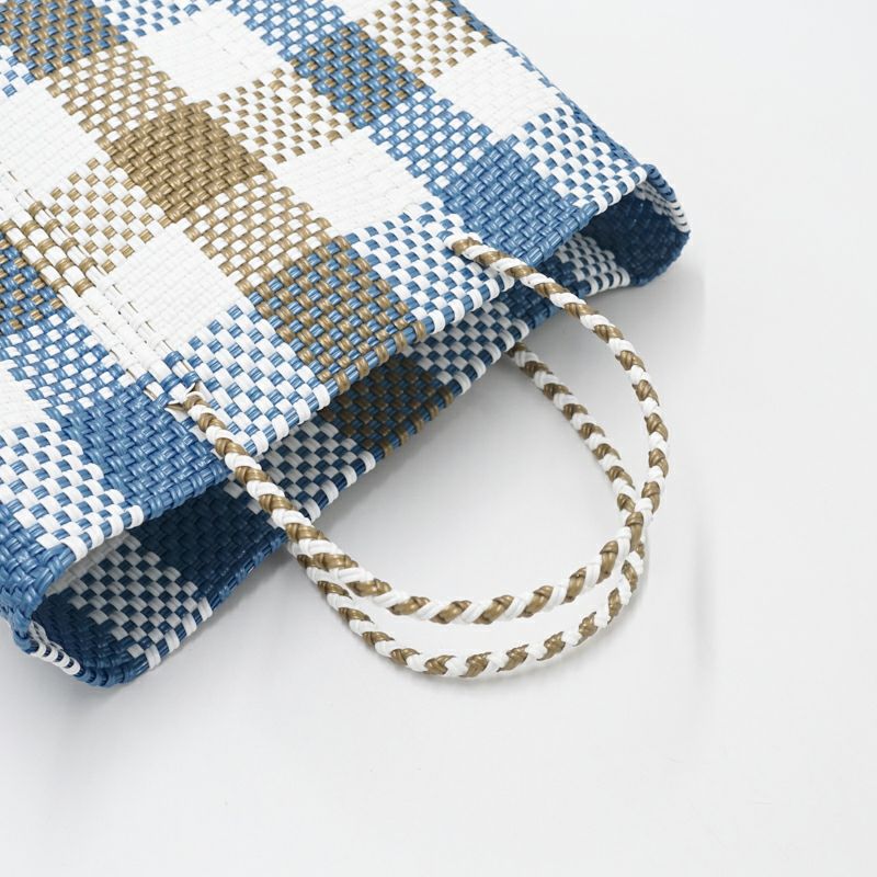 MERCADO BAG - 3COLORS CHECK - White / Metallic Blue / Gold (XS)