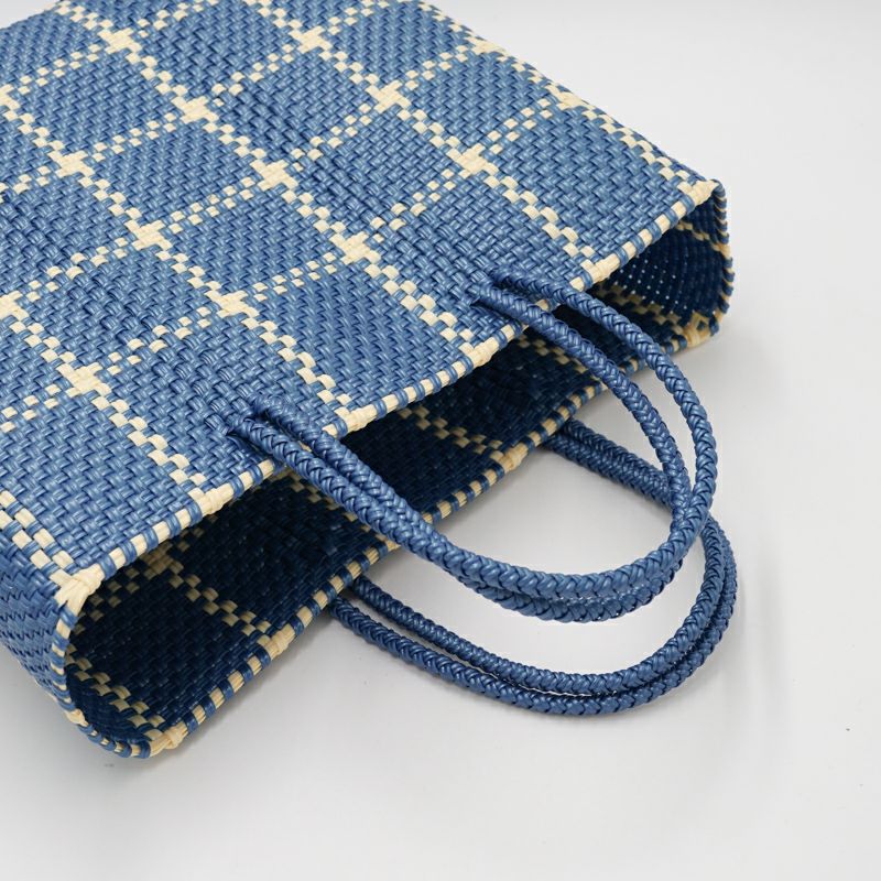MERCADO BAG - LATTICE - Metallic Blue / Cream (S)