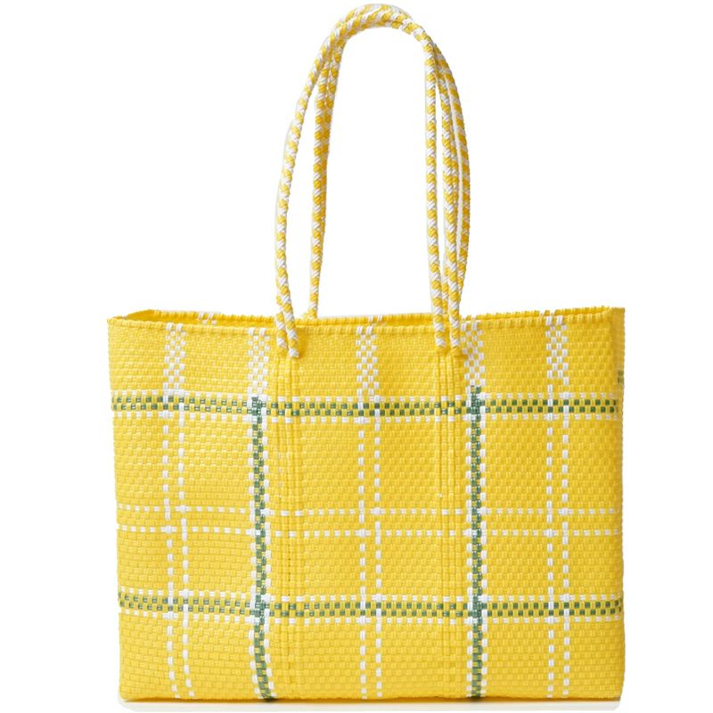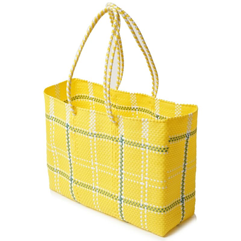 MERCADO BAG - LATTICE - LONG HANDLE - Yellow / White / Metallic Green (L)