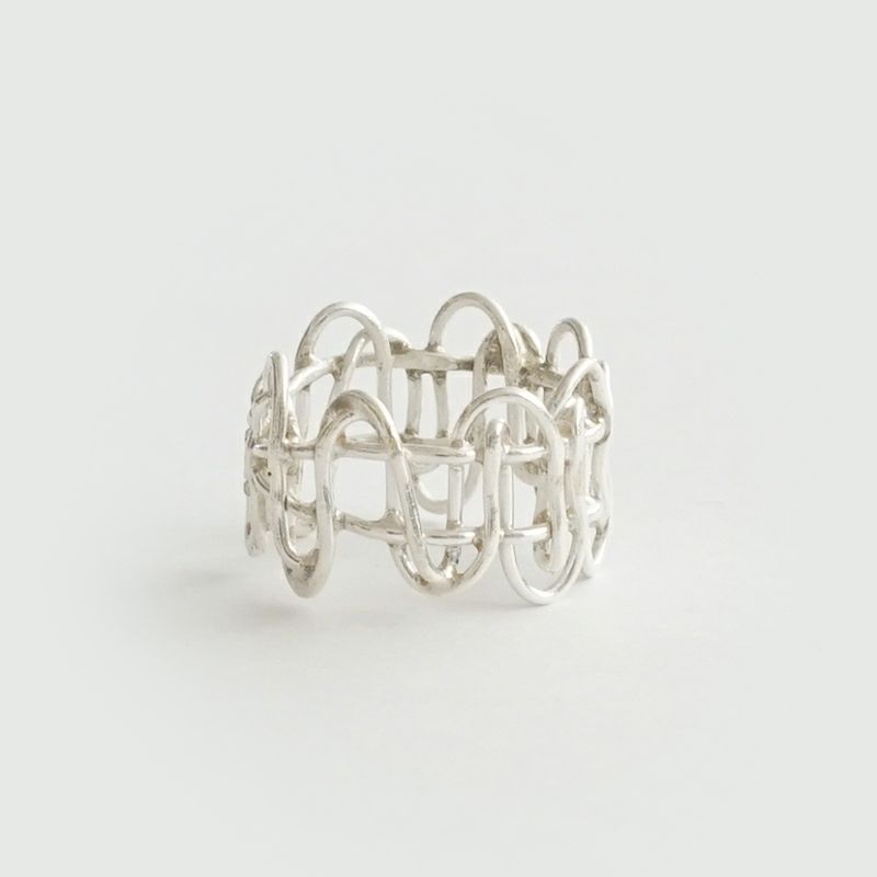 緩やかにカーブするリングに球体を組み合わせたリングは、