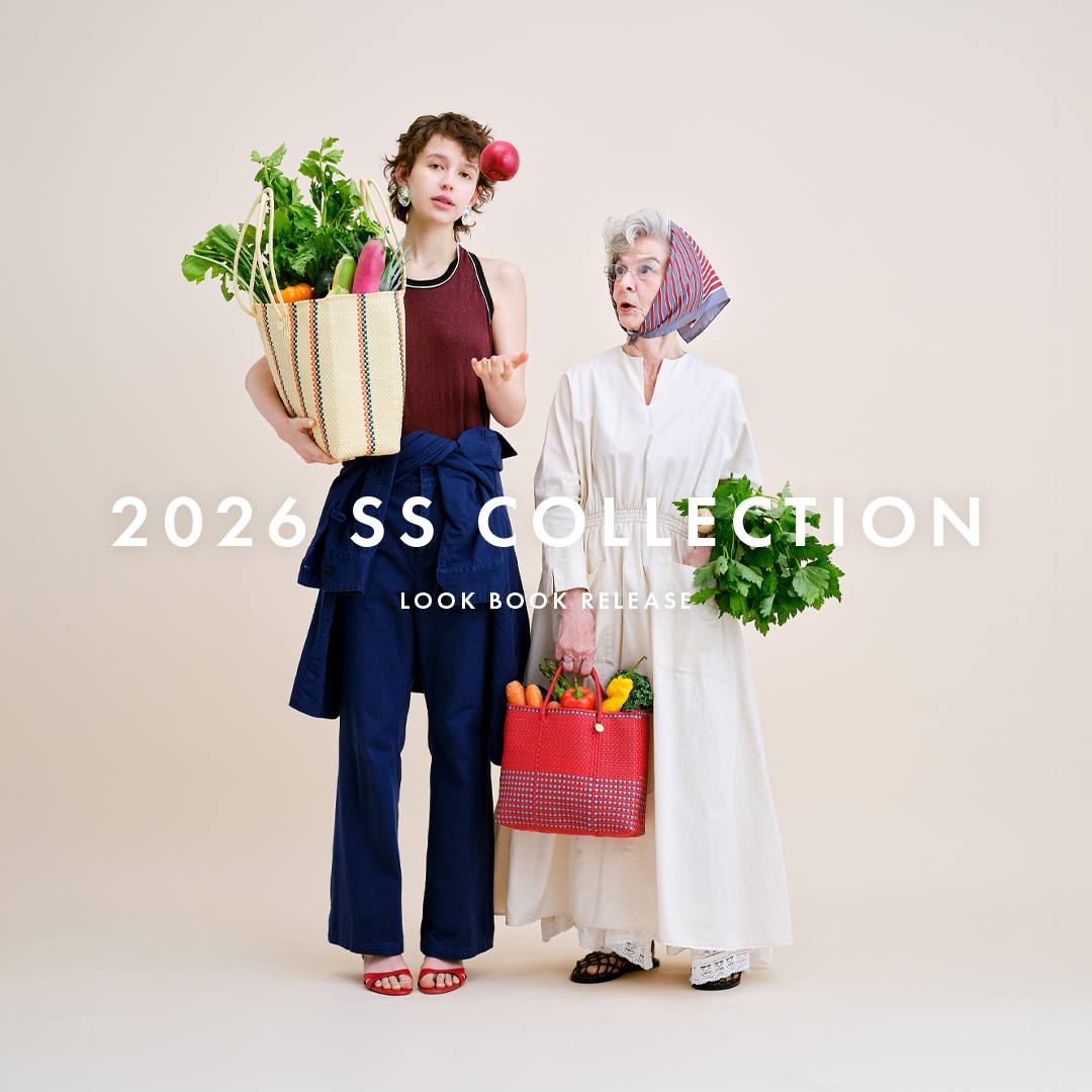 落ち着いたトーンのメルカドバッグは淡い色や軽やかな素材が多く用いられる春のコーディネートを引き締めてくれます。