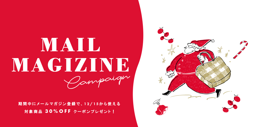 - 12/15~メールマガジン会員様限定キャンペーン【30%OFFクーポンプレゼント】