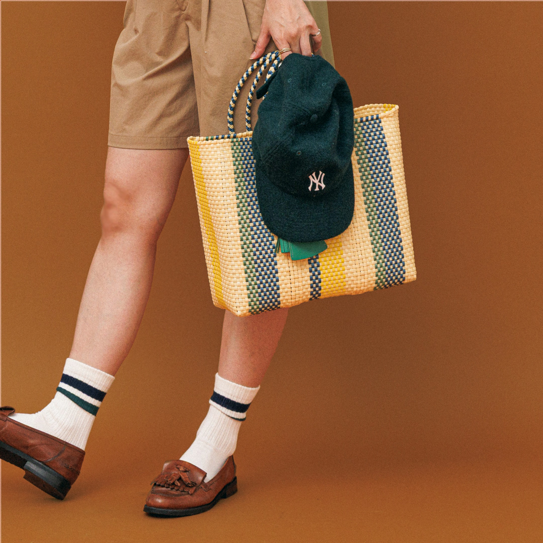 MERCADO BAG - RAYA - Cream / Yellow / Metallic Blue / Metallic Green (S)
