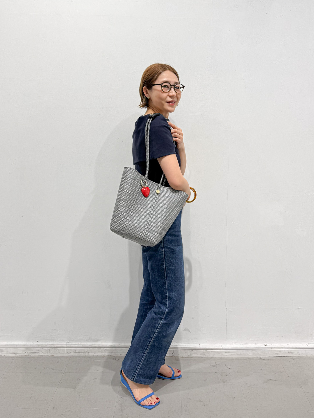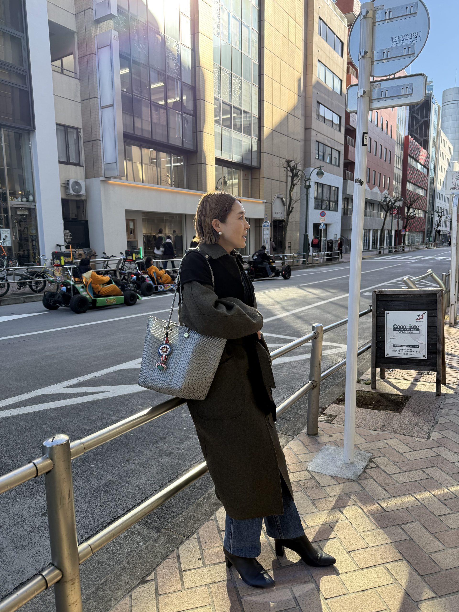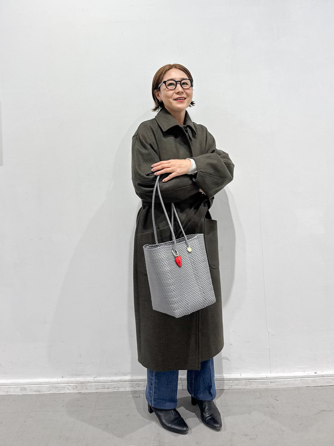 ”シルバーのロングハンドルは最近一番使用頻度が高いです。通常のメルカドバッグのロングハンドルよりも長めのハンドルなので厚手のコートにも対応出来て本当に便利!